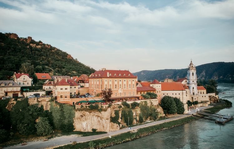 Erhaben thront dieses historische Juwel in unmittelbarer Nähe des berühmten barocken Kirchturms über der Donau. Der 1630 errichtete Renaissancebau wurde in jahrzehntelanger privater Initiative mit viel Liebe und Engagement in ein Hotel der Spitzenklasse verwandelt. In dem wunderbaren, mit viel Charme ausgestatteten 5-Sterne-Hotel, Mitglied von „Relais & Chateaux“, findet man wertvolle Antiquitäten neben höchstem, modernen Komfort. Hallen- und Freibad, Dampfbad und Sauna, Fitnessraum und Fahrräder stehen dem Hotelgast selbstverständlich zur Verfügung.
