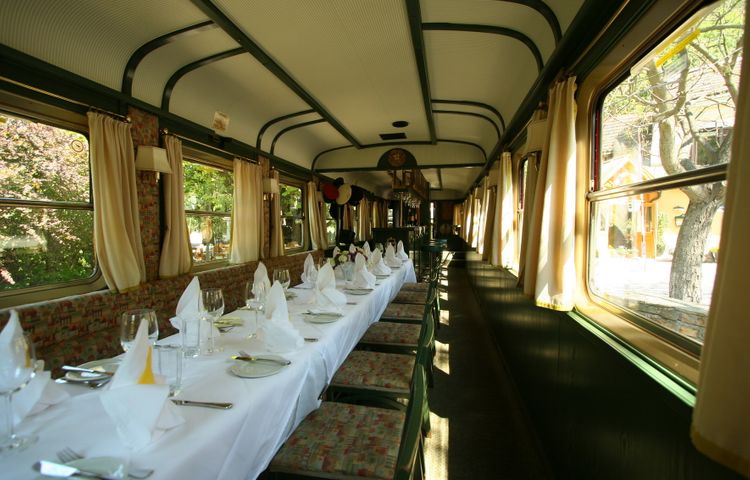 Unter Elsbeeren am Salonwagen des Landgasthofes Schickh
