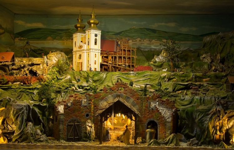 Basilika mit Schatzkammer. Die mechanische Krippe anno 1892 hat seit seiner Fertigstellung den Ort nicht verlassen (Maria Taferl Nr. 7, tägl. geöffnet, T +43 (0) 6 76 / 73 09 513). Das Alpenpanorama wurde anfangs von seinem Erbauer Leopold Steindl auf Jahrmärkten und Kirchtagen zur Schau gestellt und ist seit 1949 in Maria Taferl.