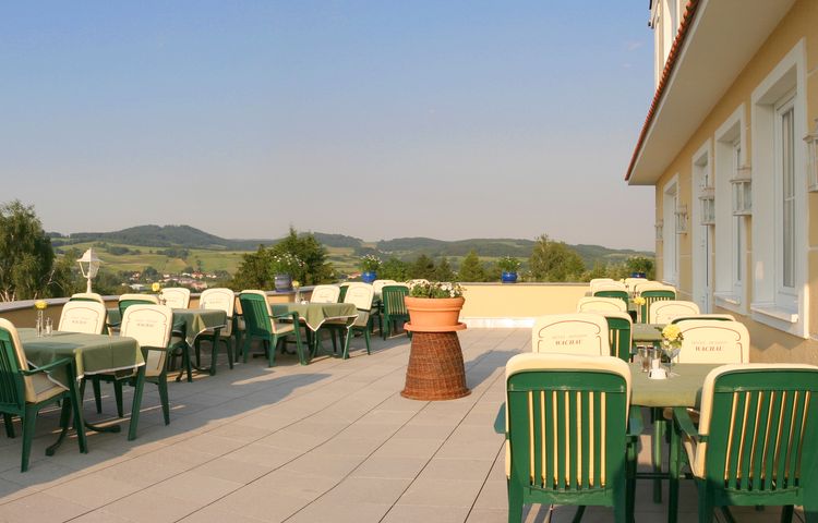 69 Plätze im Restaurant, 39 Pl. auf der Panoramaterrasse; Küche: 17–21.30 Uhr. Ruhetage: So + 2. Ruhetag variabel, siehe Website.Küchenlinie: Kreative, regionale Küche, Produkte von eigener Bio-Hofmanufaktur, hausgemachte Pralinen und Schokolade. Preise: Vorspeisen: € 9,– bis € 14,–, Hauptgerichte € 13,– bis € 39,–, Desserts € 4,– bis € 9,–; 4-gängiges Gourmetmenü Wachauer Stube € 49,–.