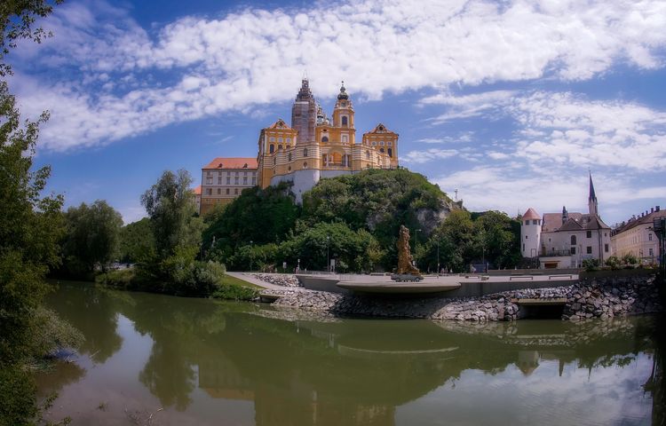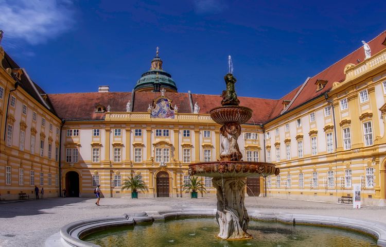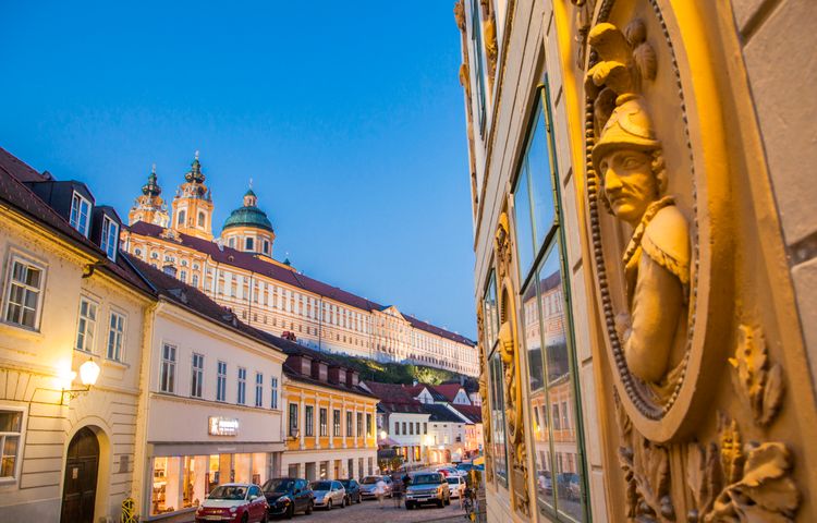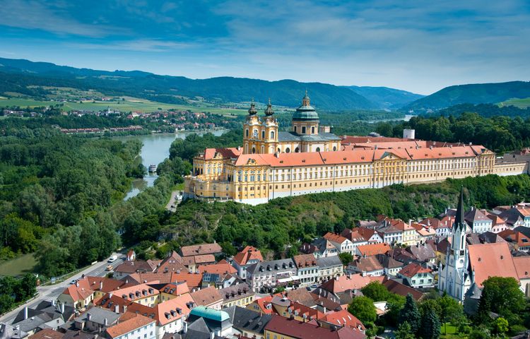 Ein Meisterwerk der Symmetrie, virtuos auf einen Felsen gesetzt – so präsentiert sich das 1089 gegründete Benediktinerstift Melk, in dem auch Umberto Ecos Roman „Der Name der Rose“ seinen Anfang nahm. Besuchern eröffnet sich eine spannende Reise in die Vergangenheit – durch die Stiftskirche, den prunkvollen Marmorsaal, die Bibliothek mit unglaublichen 85.000 Bänden und 1.200 Handschriften oder die Altane mit umwerfendem Panorama – denn die von Jakob Prandtauer erbaute Stiftsanlage thront auf einem 60 m hohen Felsplateau über der Donau sowie der Altstadt von Melk.