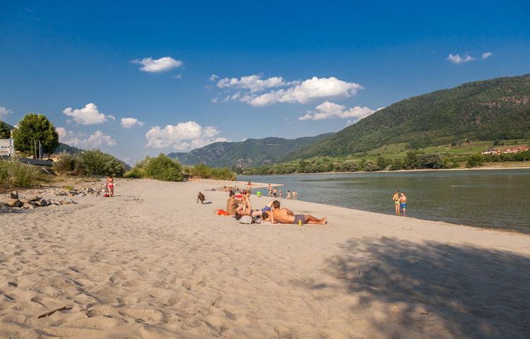 Erlebnisbad, Fischen, Tennis, Kinderspielplätze, Beach-Volleyballplatz, Radverleih, 2 km verkehrsfreie Donauuferpromenade, Ausgangspunkt zahlreicher Wanderungen und Radtouren, Donau-Rollfähre (mit „Camera obscura“ von Olafur Eliasson).