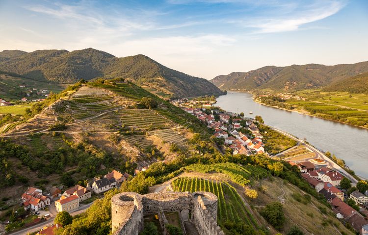 Der Hauptort der mittleren Wachau, bereits 865 erstmals urkundlich erwähnt, wirkt mit seinen kopfsteingepflasterten Gassen und historischen Häuserzeilen rund um die spätgotische Mauritiuskirche (15. Jh.) wie die zauberhafte Kulisse eines Heimatfilmes. Angelehnt an den legendenumwobenen Tausendeimerberg, der den Winzern in ertragreichen Jahren tausend Eimer Wein (56.000 l) beschert, verbindet Spitz schönste Gotik („Altes Rathaus“) mit eleganter Renaissance („Schloss zu Spitz“, 17. Jh., alte Hauerhöfe). Besonders eindrucksvolle Panoramablicke eröffnen sich von der Burgruine Hinterhaus am Ausgang des Spitzerbachtales und vom „Roten Tor“, das zur Zeit der Schwedenkriege schaurige Berühmtheit erlangte.