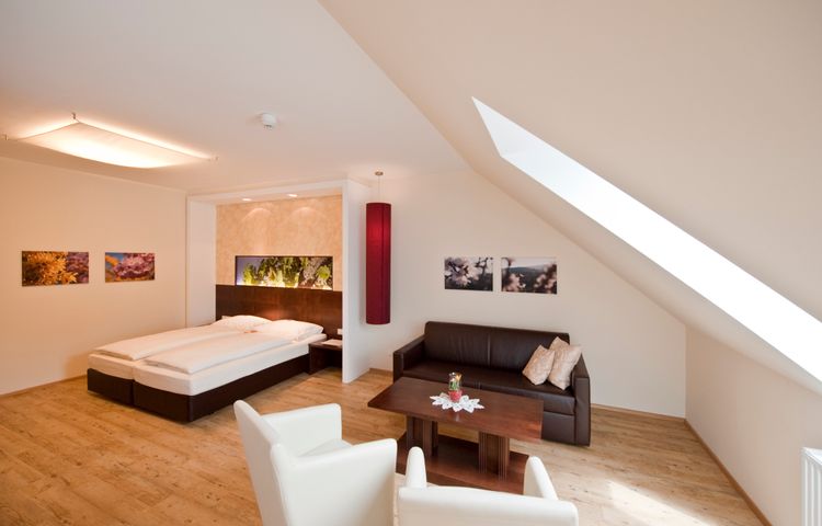 Kat. ***S, 8 DZ (Du/WC, Kabel-TV), 4 4-Sterne-gerechte Genießerzimmer: 2 Suiten (Erlebnisdusche, WC getr., Flat-TV, Terrasse), 2 Familienappartements (Wohn-Schlafraum getr., Erlebnisdusche, WC getr., Flat-TV, Terrasse), WLAN; Garten mit Komfortliegen. Parkplätze. Betriebsferien: Dezember bis Mitte Februar. Preise: Ü/F im DZ p. P. € 55,– bis € 79,–. ÜF Suite & Appartement p. P. € 56,– bis € 103,–.