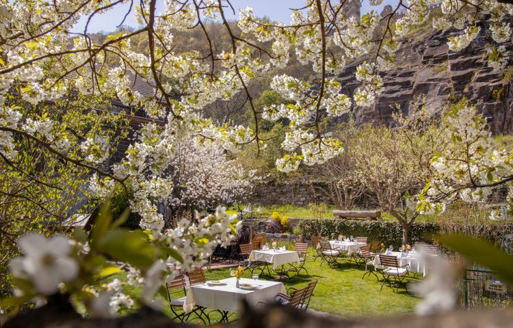 Unterm Kirschbaum im Garten des historischen Gasthofes Prankl
