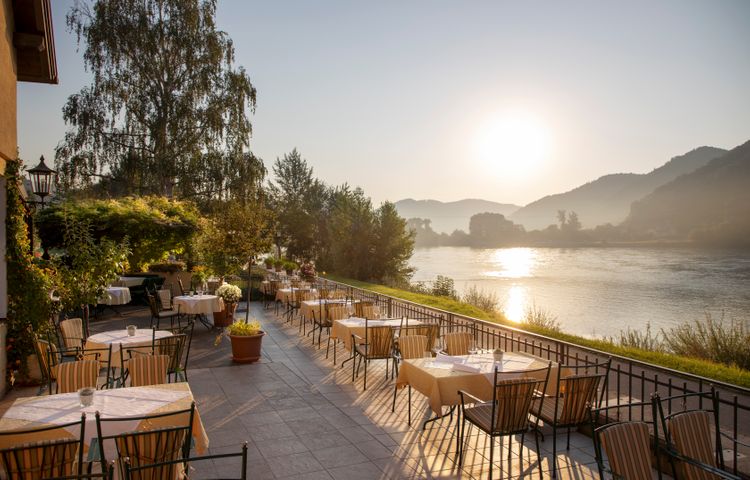 Die bezaubernde Donau-Gartenterrasse sowie die einladende Gartenlounge bilden den stimmungsvollen und zugleich romantischen Rahmen für die kreative Haubenküche dieses Restaurants. Ausflugsboote und Schleppkähne ziehen gemächlich vorbei, während all die Köstlichkeiten serviert werden, die Gerhard Heinzle mit Raffinesse und Gespür für modernen Zeitgeist kreiert. Im Mittelpunkt stehen Fischspezialitäten aus den umliegenden Gewässern, allen voran Zander, Saibling, Wels und Karpfen. Ein Erlebnis für sich sind auch die hausgeräucherten Forellen. Keinesfalls entgehen lassen sollte man sich ebenso eine der verführerischen Mehlspeisen. Für die passende Weinbegleitung ist ebenfalls gesorgt, geben sich doch auf der Karte alle Wachauer Spitzenwinzer ein Stelldichein. Neben den lauschigen Plätzen im Garten steht zudem eine ländlich gestaltete Stube bereit, die auf Anhieb eine heimelige WohlfühlAtmosphäre ausstrahlt.