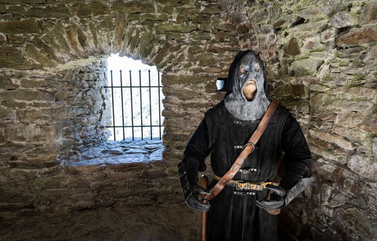 Das erfahren wir auf der Burgruine Aggstein kurz nachdem wir ein Amulett und einen leuchtenden Kristall an uns genommen haben. Diese Utensilien sollen uns im „Outdoor Escape Room“ bei der Lösung der folgenden Aufgabe helfen: Hadmar III., der nun als „Hademar“ auf der Ruine spukt, möchte zur Vergebung seiner Sünden eine Kette für den Kirchturm schmieden. Ein Kettenglied fehlt ihm noch, und wir sollen ihm dabei helfen.